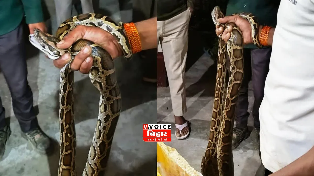 बिहार के बगहा में इंडो-नेपाल सीमा अंतर्गत वाल्मीकिनगर में एक अजगर घर में घुसकर आराम फरमा रहा था. छज्जे से सांप का आधा शरीर नीचे लटकता देख घर वालों की उसपर नजर पड़ी. जिसके बाद विशालकाय अजगर को देखते ही उनकी चीख निकल गई और उन्होंने फौरन इसकी सूचना वन विभाग को दी।