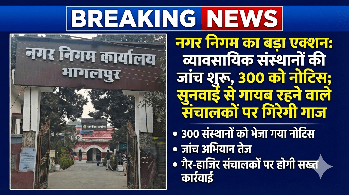 भागलपुर नगर संवाददाता | 22 फरवरी, 2026: शहर की आंतरिक व्यवस्था, राजस्व और सुरक्षा मानकों को सुदृढ़ करने के लिए नगर निगम प्रशासन ने अब पूरी तरह कमर कस ली है। निगम की अतिक्रमण शाखा और विशेष टीमों ने शहर के व्यावसायिक प्रतिष्ठानों के खिलाफ एक व्यापक जांच अभियान छेड़ दिया है। इस अभियान के पहले चरण में 300 संस्थानों को नोटिस जारी कर उनके दस्तावेजों की बारीकी से जांच की जा रही है।