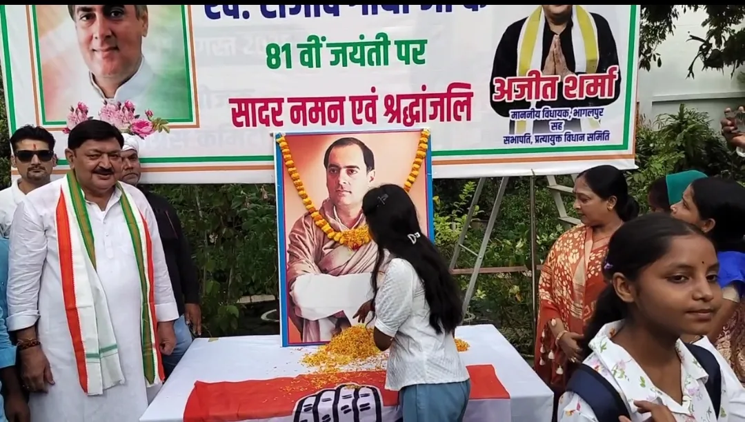 भागलपुर, 20 अगस्त 2025: भारत के पूर्व प्रधानमंत्री स्व. राजीव गांधी की 81वीं जयंती आज भागलपुर के कांग्रेस कैम्प कार्यालय में समारोहपूर्वक मनाई गई। कार्यक्रम की शुरूआत माननीय विधायक श्री अजीत शर्मा ने राजीव गांधी के तैलचित्र पर पुष्पांजलि अर्पित कर की।