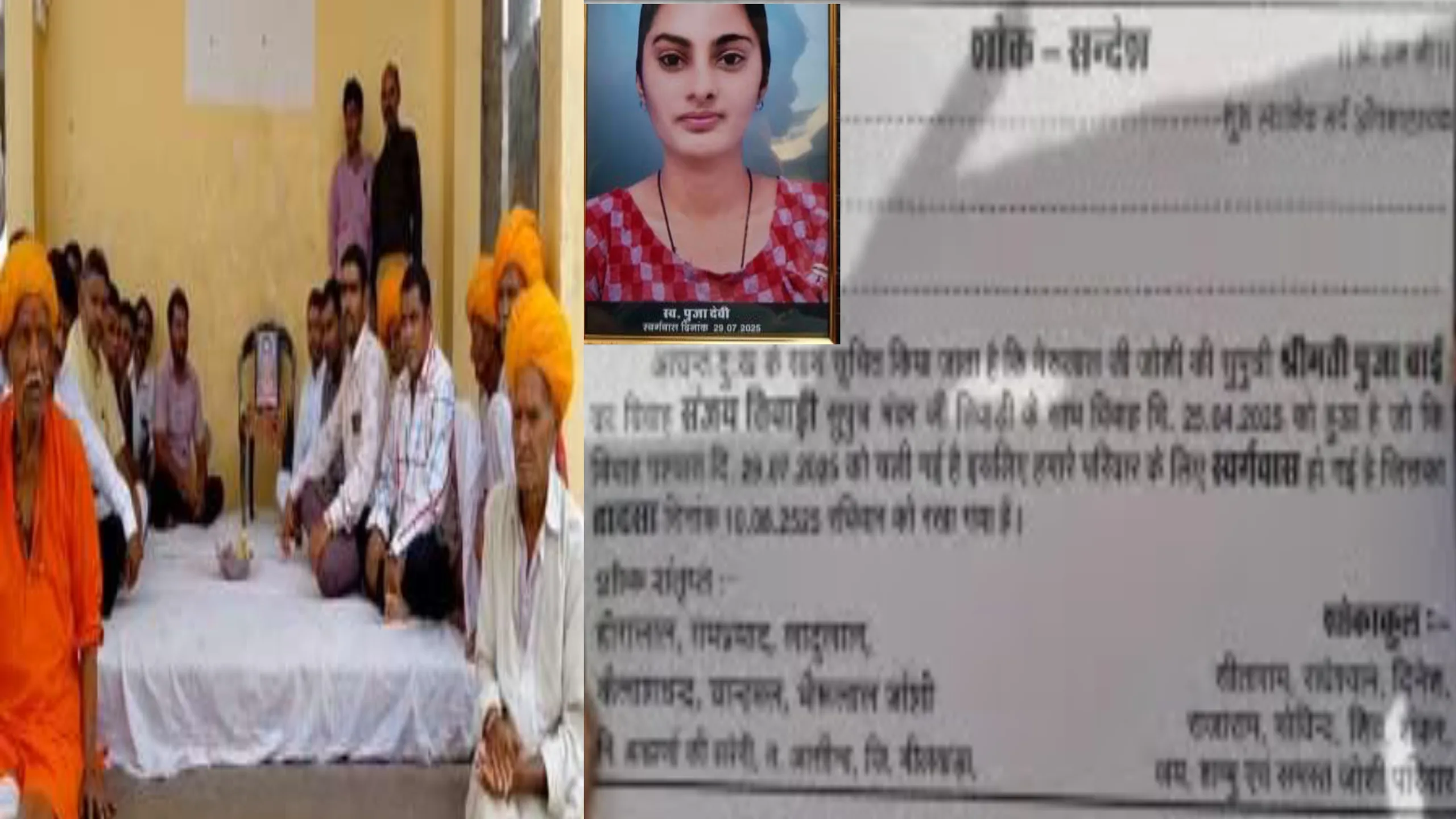 “अत्यंत दुःख के साथ सूचित किया जाता है कि मेरी सुपुत्री का विवाह दिनांक 25 अप्रैल 2025 को हुआ। जो विवाह पश्चात दिनांक 29 जुलाई 2025 को चली गई है। इसलिए हमारे परिवार के लिए वह स्वर्गवास हो गई है, जिसका द्वादशा दिनांक 10 अगस्त, रविवार को रखा गया है।”