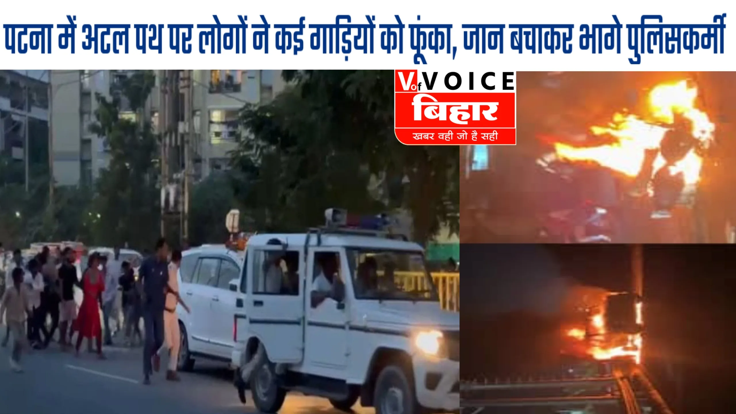 पटना। मासूम भाई-बहन की मौत के मामले में पुलिस द्वारा अब तक किसी की गिरफ्तारी नहीं होने से नाराज लोगों का गुस्सा सोमवार देर शाम अटल पथ पर फूट पड़ा। सैकड़ों प्रदर्शनकारियों ने सड़क जाम कर आगजनी की और डायल 112 की दो बाइक तथा मद्य निषेध विभाग की एक स्कॉर्पियो को फूंक डाला। इसके अलावा डेढ़ दर्जन से अधिक वाहनों के शीशे भी तोड़ दिए।