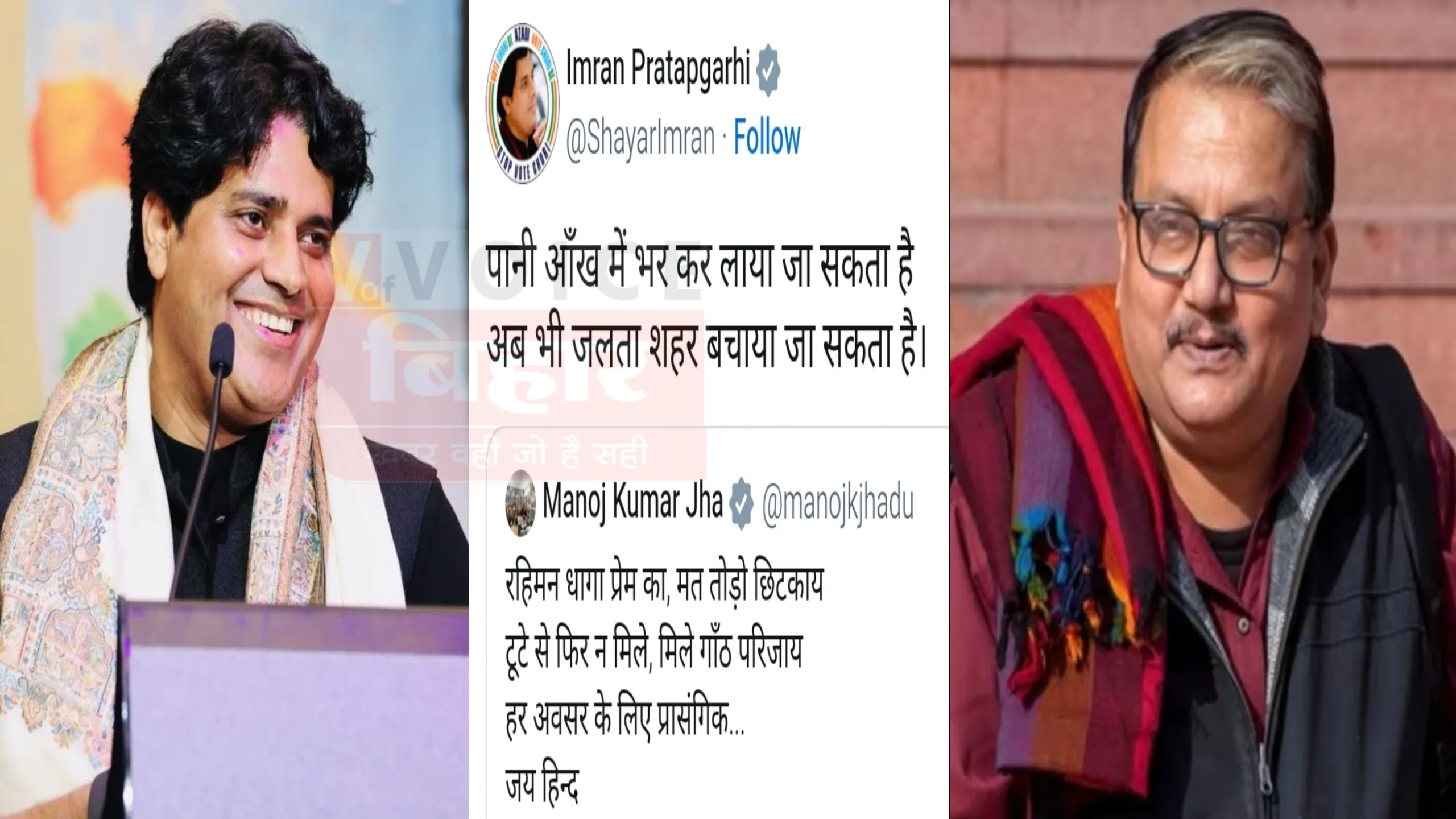 कुछ ही देर बाद कांग्रेस सांसद इमरान प्रतापगढ़ी ने मनोज झा की पोस्ट को री-शेयर करते हुए लिखा —