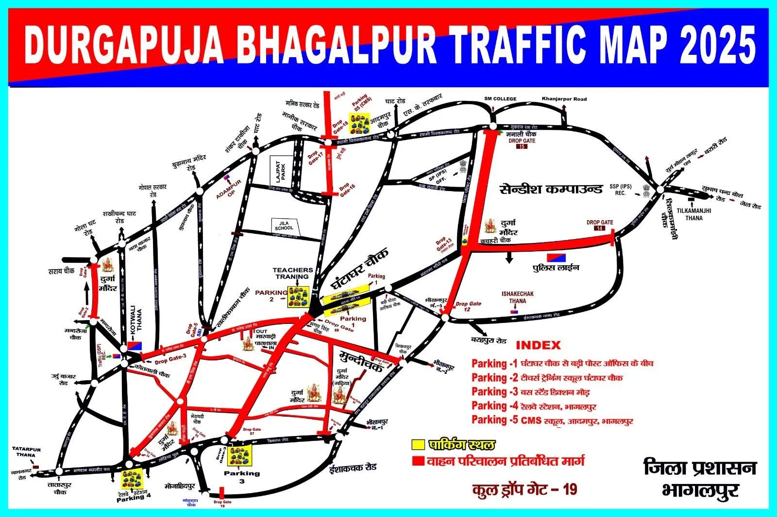 भागलपुर: दुर्गा पूजा के मद्देनजर शहर में ट्रैफिक व्यवस्था में बड़े बदलाव किए गए हैं। यह नई व्यवस्था कल से शुरू होकर विसर्जन तक प्रभावी रहेगी।